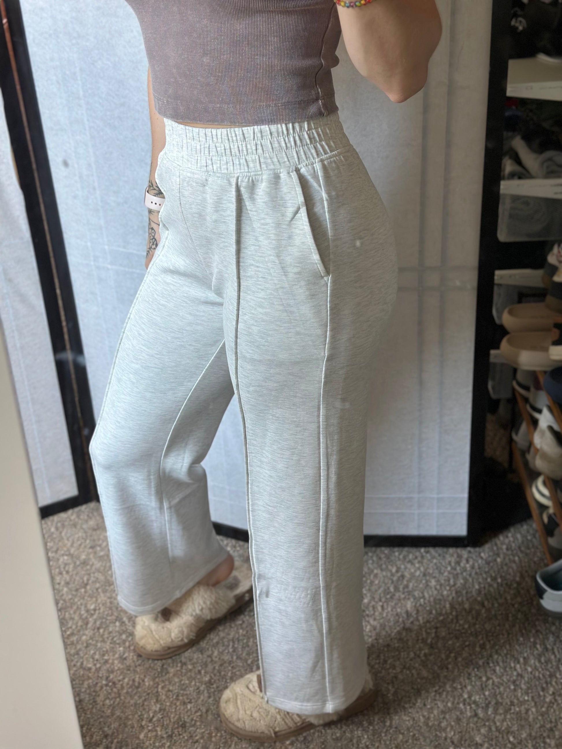 These heather grey sweatpants are perfect for any activity. Wear them while you’re working out or just lounging at the house. The cooling fabric is super soft and silky and sure to keep you comfy.